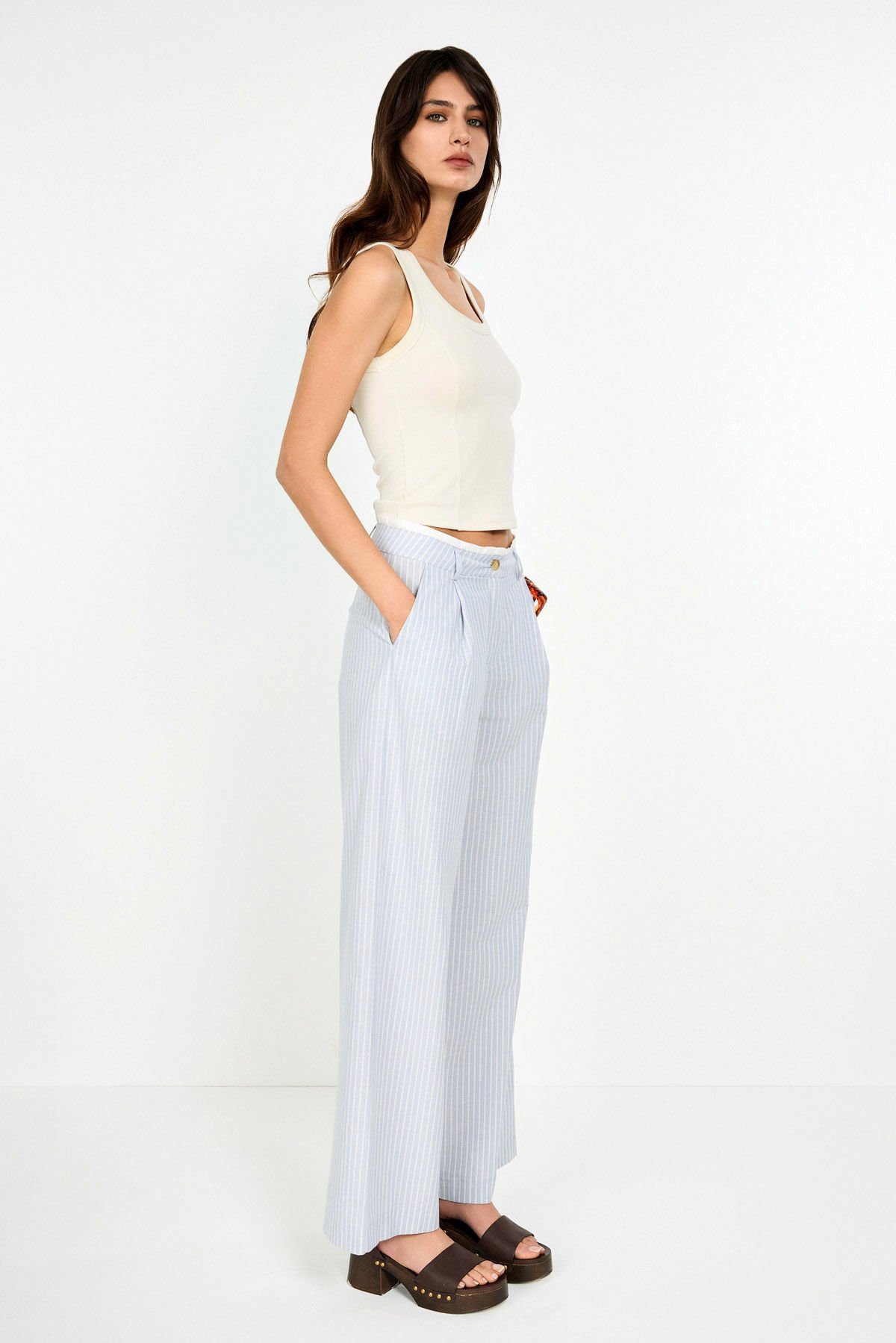 Modern şehirli stilin sade şıklığı: Boneqa'nın Belden Poplin Detaylı Çizgili Pantolonu, çizgili desenin zamansız karakteriyle, günlük kombinlerinize enerjik ve rafine bir dokunuş kazandırıyor.